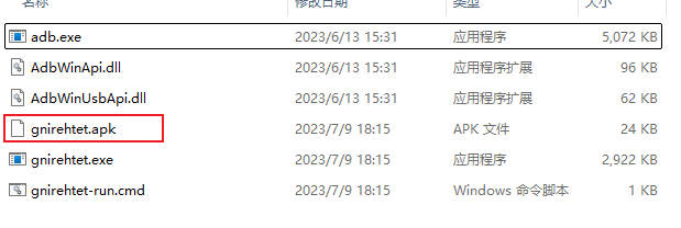4. 把从GitHub下载的gnirehtet压缩包中的gnirehtet.apk安装到手机中。