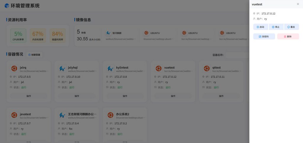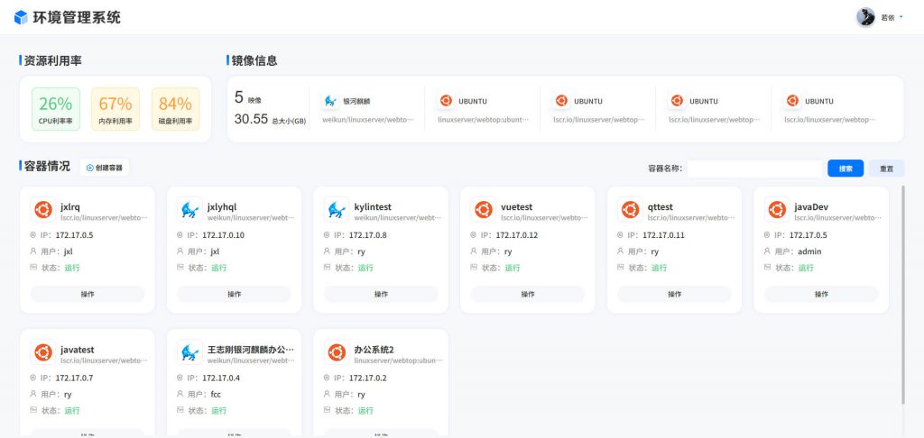 基于Webtop的特点我们开发了一套企业内部Linux系统环境管理系统,系统分为管理端和用户端,管理员可以通过管理端为用户创建基础环境,用户使用账号密码通过浏览器进行系统操作。